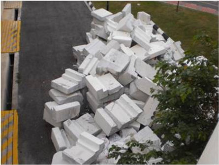 Secondary breaking of cut panels into small pieces by hydraulic burster.